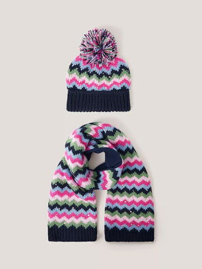 Kids' Zig Zag Bobble Hat & Scarf Set, Multi