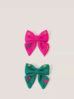 Kids' Christmas Embroidered Bow Hair Clips, Pack Of 2, Multi