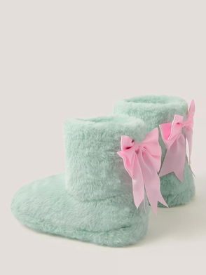 Kids' Faux Faux Bow Embellished Slipper Boots, Pink/Green