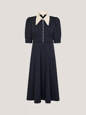 Clay Collar Jersey Tea Dress, Navy