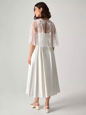 Celeste Floral Cape Satin Wedding Dress, Ivory