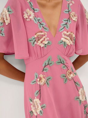 Cora Embellished Floral Dress, Rose