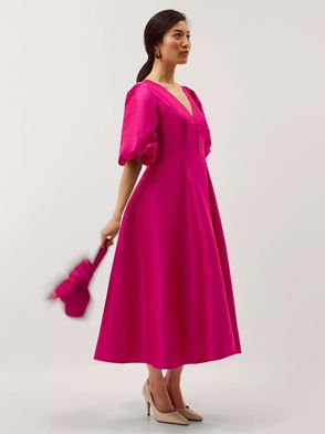 Beatrice Flared Midi Dress, Pink