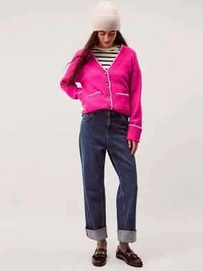 Oona V-Neck Oversized Cardigan, Dark Pink