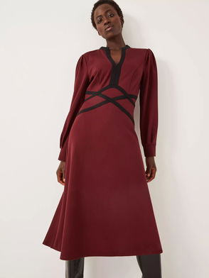 Mia Embroidered Corduroy Midi Dress, Cherry