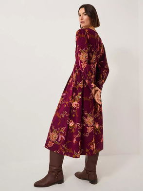 Mia Embroidered Corduroy Midi Dress, Cherry