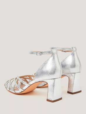 Kids' Two-Part Bow Heeled Shoes, Silver