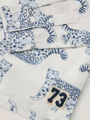 Kids' Cotton Long Sleeved Leopard Print Shirt, White/Multi