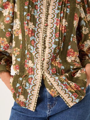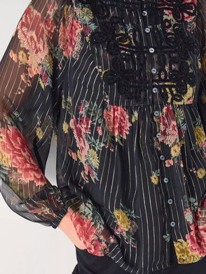 Darla Metallic Yarn Floral Blouse, Black/Gold