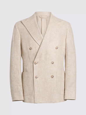 Linen Blend Double-Breasted Blazer, Oatmeal