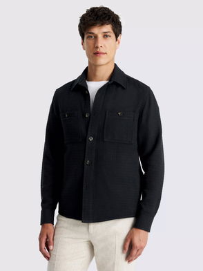 Cotton Blend Regular Fit Waffle Textured Overshirt, Blue