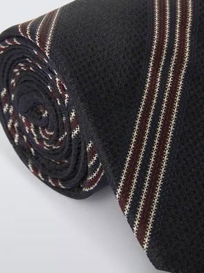 Silk With Cotton Sablé Effect Striped Tie, Grey/Brown