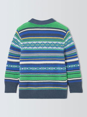 Kids' Fair Isle Zip Through Cardigan, Blue Green Red