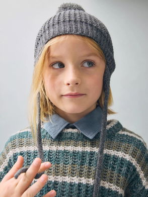 Kids' Cotton Blend Striped Cable Knit Jumper, Navy/Multi