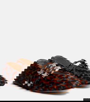 Eyelet Bow Leopard-Print Satin Ballet Flats