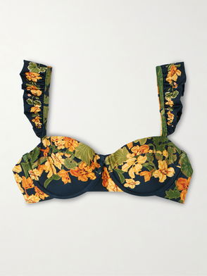 Primavera Ceiba Faux Pearl-Embellished Floral-Print Recycled Bikini Top
