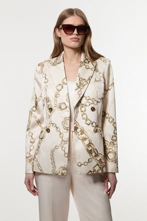 Double-breasted Wool Turlington Jacket With Jacquard Leopard Design