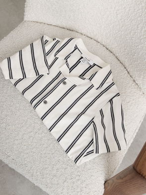 3-9 Yrs Stripe Knitted Cuban-Collar Shirt In White/Navy