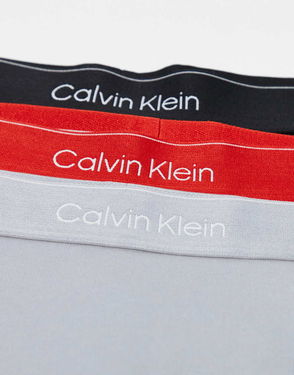 Essential Microfibre 3 Pack Trunk In Black With Coloured Waistband In Burgundy / Grey / Orange