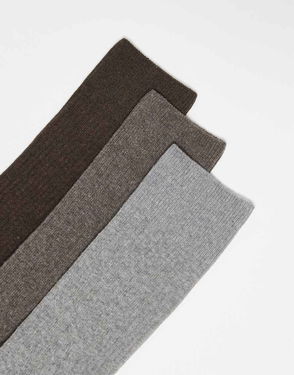 3 Pack Rich Cotton Rib Socks In Grey Melange And Brown