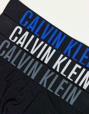 Intense Power 3 Pack Microfibre Low Rise Trunks In Black With Grey/blue Logo Waistbands
