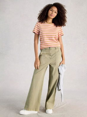 Abbie Striped Colourblock T-Shirt, Pink/Green