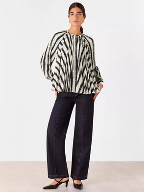 Hazy Stripe Pleated Top, Ivory/Multi