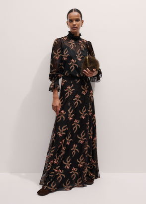 Aurora Floral Midi Dress, Black/Multi