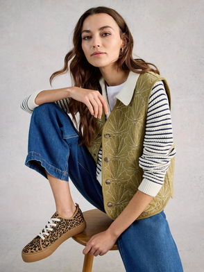 Ayra Embroidered Quilted Gilet, Green/Multi