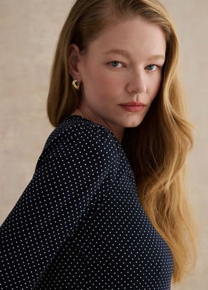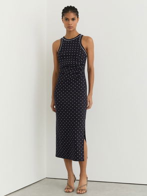 Jersey Polka-Dot Racer Midi Dress In Navy/Ivory