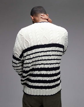 Cable Knit Breton Jumper In Cream & Navy Stripe