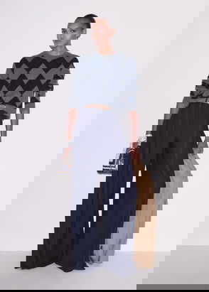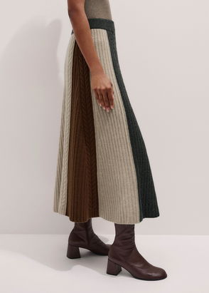 Merino Cashmere Patched Cable Knit Maxi Skirt Hazelnut Mélange Multi