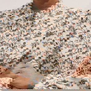 Micro Paisley Print Blouse + Tie Light Cream Multi