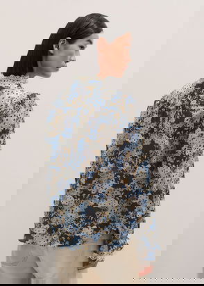 Silk Cotton Camo Meadow Print Blouse Blue/Multi