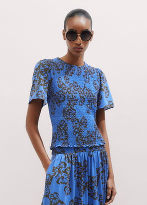 Stencil Bloom Print Smock Top Provence Blue/Spring Chocolate
