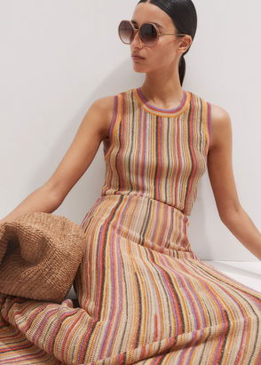 Mixed Media Stripe Midi Dress Nutmeg/Multi