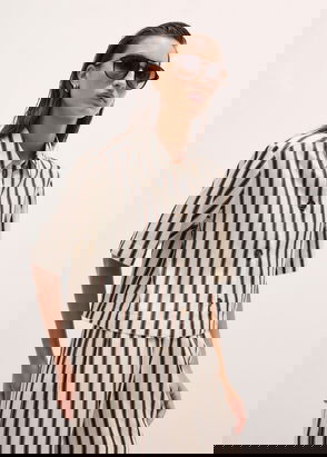 Crease-Less Linen Spring Stripe Boxy Cropped Shirt Light Cream Multi