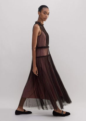 Tulle Maxi Dress + Tie Chocolate Brown/Pink