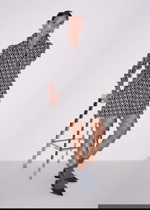 Graphic Jacquard Short A-Line Dress Navy Multi