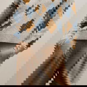 Merino Cashmere Argyle Jumper Grey Mélange Multi
