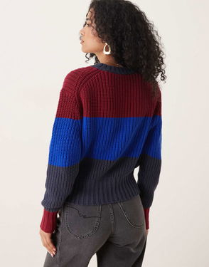 Jeans Colour Block Chunky Knit Jumper In Burgundy/navy