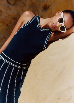Cotton Boucle Cut Out Maxi Dress Navy/Cream