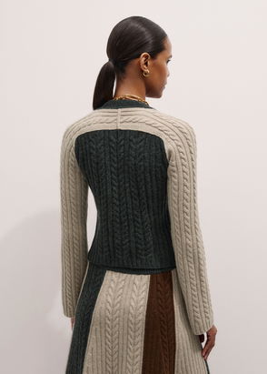 Merino Cashmere Patched Cable Cardigan Hazelnut Melange Multi