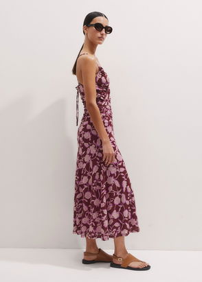 Silk Scattered Floral Print Midi Dress Rum Raisin/Fresh Lavender