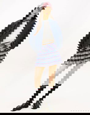 Oversized Wool Blend Rugby Cropped Jacket In Multi