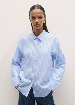 Cotton Voile Relaxed Forever Stripe Shirt Blue/White