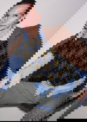 Cashmere Argyle Knit Baby Tee Olive Multi