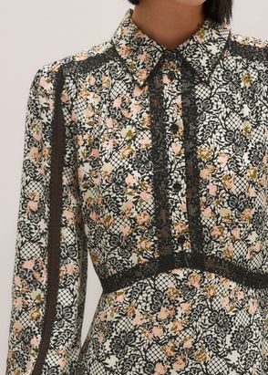Silk Lace Detail Maxi Shirt Dress Light Cream Multi
