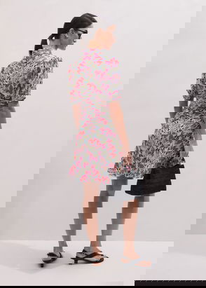 Tulip Print Short Dress Blue/Iris Purple/Multi