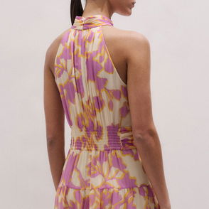 Shadow Paradise Print Halterneck Midi Dress Buttercream/Lilac/Multi